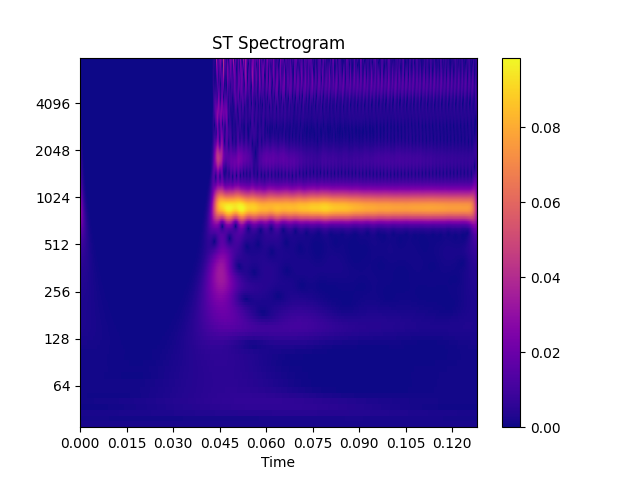 >>> import numpy as np >>> spec_arr = obj.st(audio_arr) >>> spec_arr = np.abs(spec_arr)