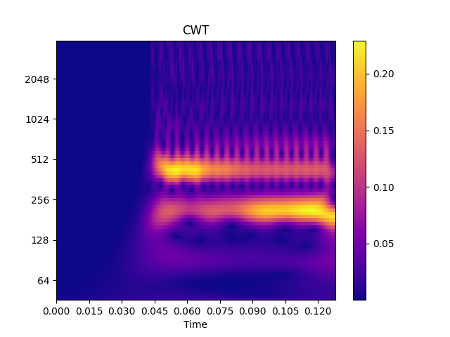 >>> import numpy as np >>> cwt_spec_arr = cwt_obj.cwt(audio_arr)